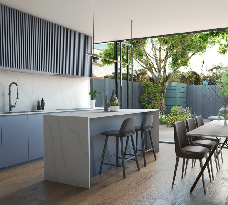Both Ultracera and Bretino are ideal materials for countertops, islands and backsplashes in the Kitchen, meeting all your needs, indoors and outdoors.